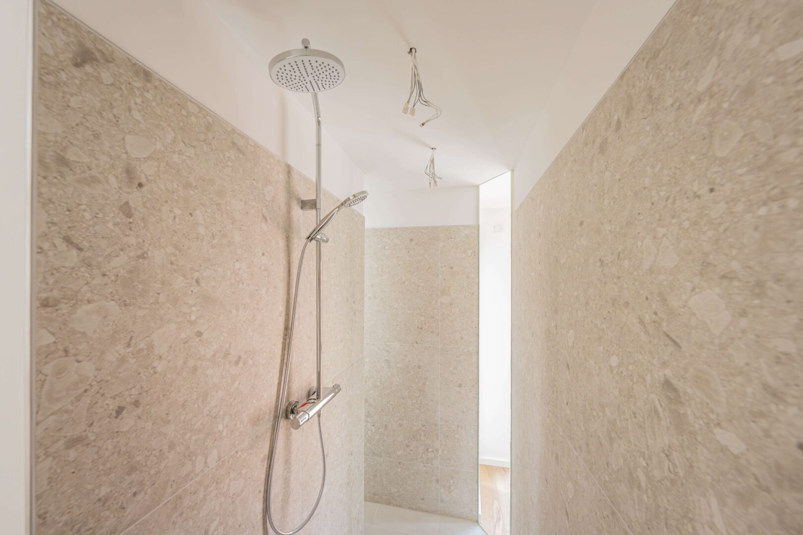 Edler Parkettboden erstreckt sich durch alle Wohnräume. Die beiden Schlafzimmer liegen ruhig und bieten ausreichend Platz. Das Hauptschlafzimmer verfügt über ein Tageslichtbad en Suite mit bodengleicher Dusche, Badewanne und Doppelwaschbecken. Das zweite Tageslichtbad ist ebenfalls großzügig gestaltet und mit einer bodengleichen Dusche ausgestattet. Moderne Terrazzofliesen setzen in beiden Bädern stilvolle Akzente.